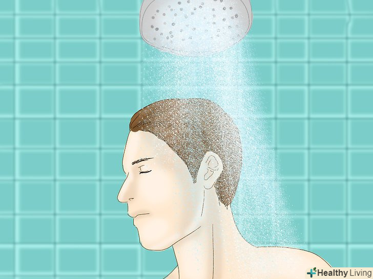 Прийміть холодний душ.у разі втоми виникає бажання не йти в душ заради декількох додаткових хвилин сну. При цьому душ-відмінний спосіб пробудження. Відрегулюйте найнижчу температуру води, яку Ви зможете витримати, а потім нанесіть відлущуючий скраб на обличчя і тіло. Це дозволить видалити вчорашню бруд і бактерії, а також зробити шкіру більш яскравою і здоровою. Під впливом холодної води кровоносні судини звужуються, тим самим знижується почервоніння і набряклість обличчя. Після душу не забудьте нанести зволожуючий засіб, оскільки зневоднена шкіра може мати нездоровий вигляд.[9]