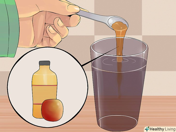 Якщо ви не можете Полоскати горло солоною водою, спробуйте використовувати інші розчини.деяким важко Полоскати горло солоною водою через те, що вони відчувають сильний присмак солі в глибині горла. В цьому випадку спробуйте використовувати інші розчини або просто додайте в солону воду ефірне масло, щоб перебити її смак. Можливі наступні варіанти:- Додайте яблучний оцет. Міститься в ньому кислота здатна вбивати бактерії так само, як сіль. Можна додати в солону воду столову ложку (15 мілілітрів) яблучного оцту, щоб посилити антибактеріальну дію розчину і приховати смак солі. Однак врахуйте, що присмак оцту може здатися вам не набагато приємніше, ніж смак солі.