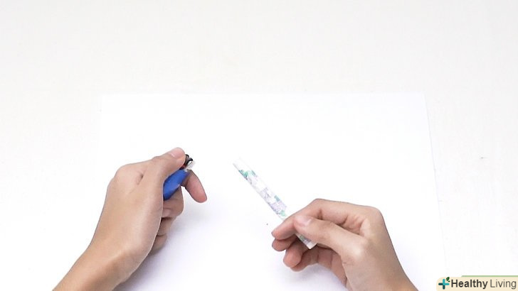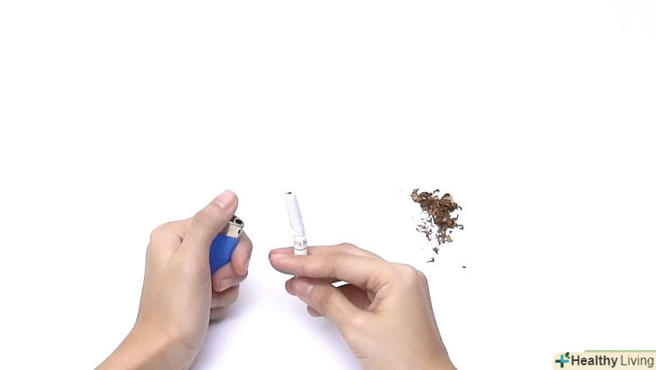 - Спочатку візьміть уламок сигарети з фільтром. Подивіться на лінію, де закінчується заповнення сигарети тютюном. Приберіть будь-які залишки тютюну і обривки паперу, що залишилися в сигареті далі цієї лінії. Тепер цей уламок сигарети повинен являти собою лише фільтр і шматок паперової трубки. Тимчасово відкладіть його в сторону.[1]