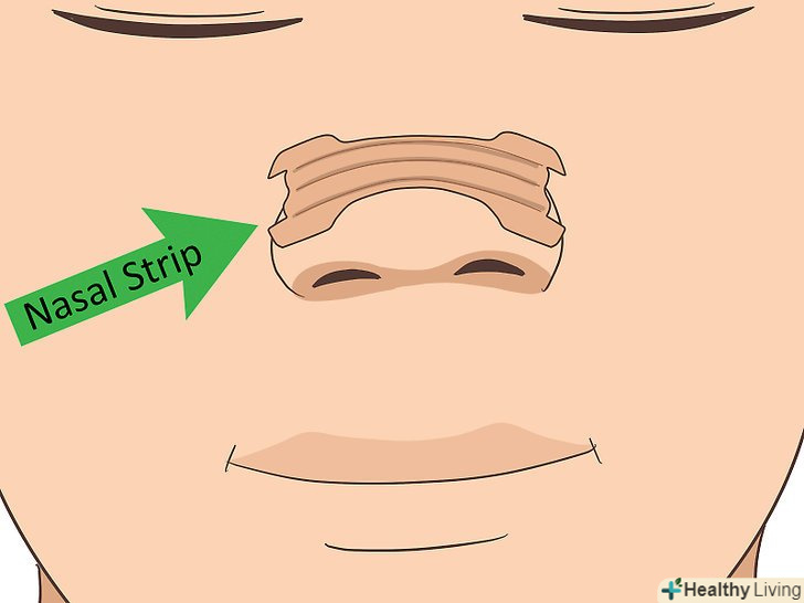 Наклейте пластир для носа і залиште його на ніч.безрецептурний пластир для носа прочистить носові ходи і дозволить дихати носом під час сну. Зніміть пластикову частину з пластиру і наклейте його на перенісся.[16]- Прочитайте інструкції на упаковці перед застосуванням.