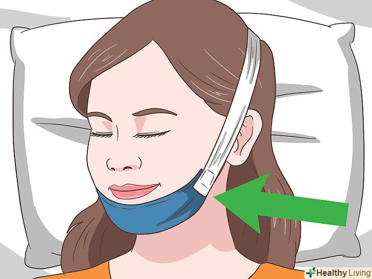 Одягніть підборіддя, щоб ваш рот залишався закритим під час сну.її можна замовити онлайн, ввівши в пошукову систему»підборідна праща". Обмотайте пращу навколо голови, уздовж неї, під підборіддям і над головою. Таким чином, під час сну ваш рот буде залишатися закритим, і ви не будете їм дихати.[17]- Такі пращі призначені для людей, які багато хропуть, і хворих, які страждають нападами апное.