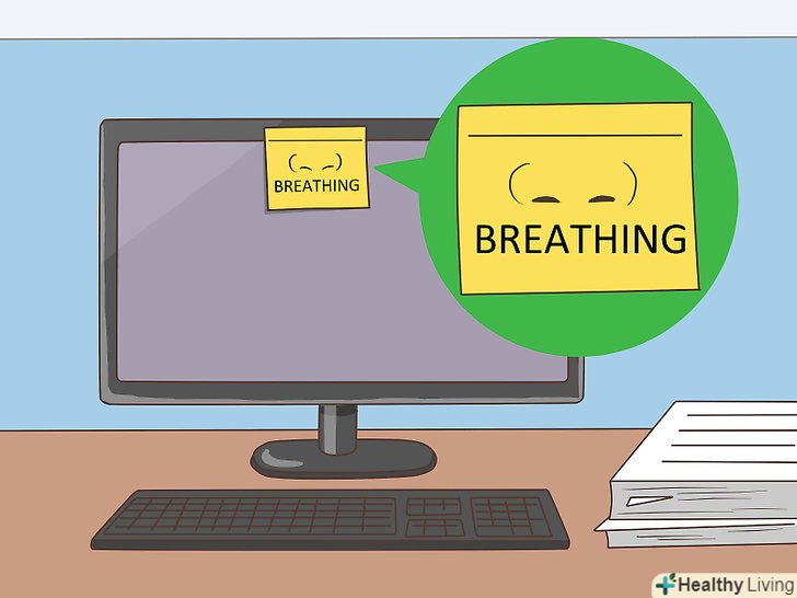 Клейте стікери для нотаток, щоб не забувати дихати носом.якщо через свою звичку ви забуваєте дихати носом, залишайте всюди письмові нагадування. Напишіть на стікері» дихай носом " і приклейте його на монітор або на сторінку в книзі, щоб не забувати дихати носом.[7]