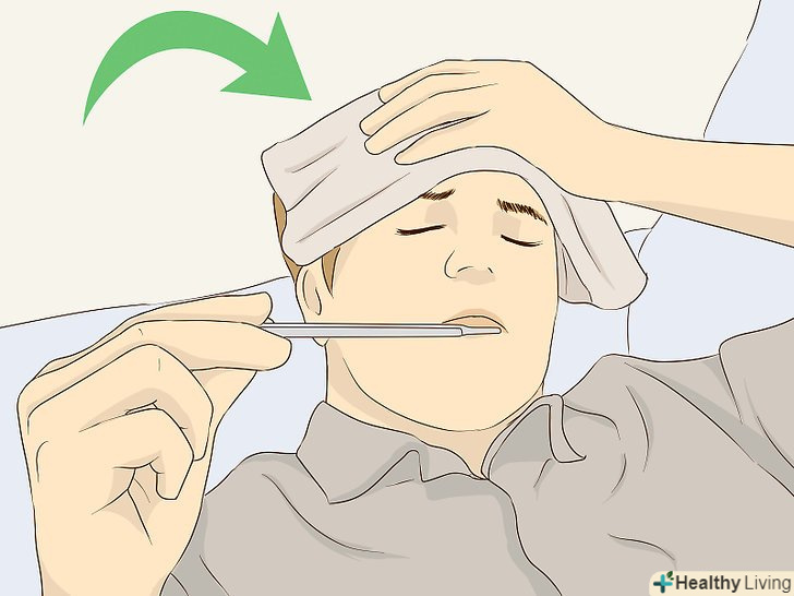 Симулируйте жар.проблеми зі шлунком часто супроводжуються жаром, тому Ви можете спробувати підробити його для більшої переконливості. Наприклад, можна підняти температуру тіла, поклавши теплий рушник на обличчя або сховавшись з головою ковдрою на кілька хвилин.[4]- Замість цього можна нагріти градусник, потримавши його під теплою водою або поклавши що-небудь тепле в область пахви перш, ніж вимірювати температуру.