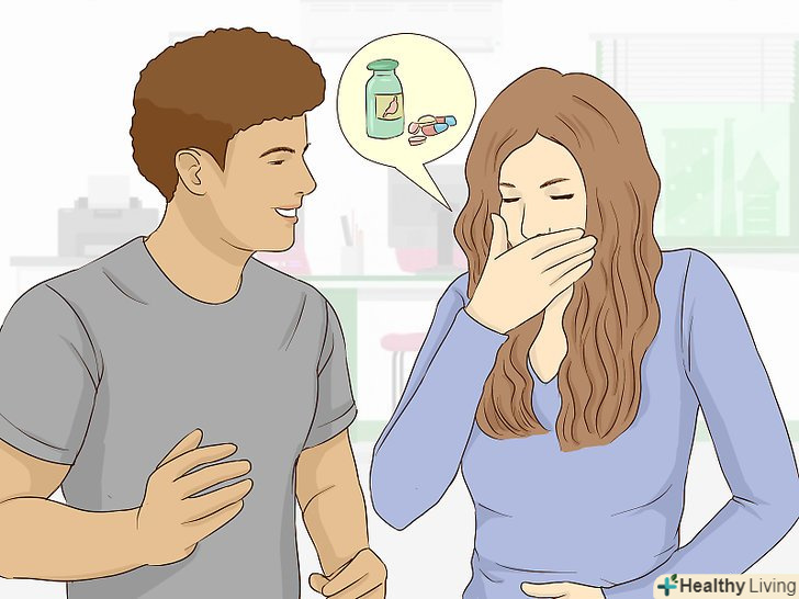 Попросіть ліки від розладу шлунка.один із способів підкріпити свою історію, це спробувати знайти ліки. Запитайте: "у нас є що-небудь від болю в шлунку? Я відчуваю себе не дуже добре. Мене може вирвати"»- Якщо ви на роботі, спробуйте покласти таблетки від печії на стіл або попросіть таблетку у колег.