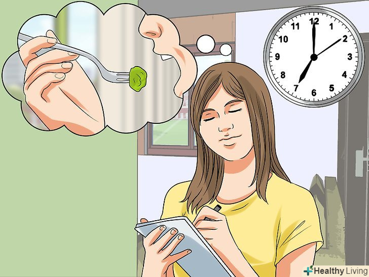 Записуйте час прийому їжі.завдяки цьому ви зможете відстежити взаємозв'язок виникнення симптомів з прийомом їжі.- Найкраще їсти в один і той же час кожен день. Це привчить ваш травний тракт до режиму, тому у нього буде достатньо часу переварити їжу до нового прийому їжі.