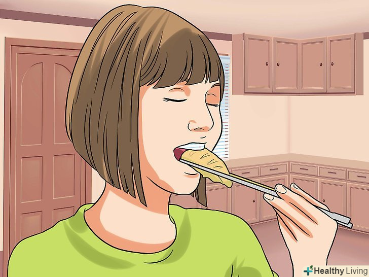 Їжте повільно. Ретельно пережовуйте їжу. Це полегшує роботу травного тракту, а також допомагає зменшити симптоми СРК. Вживаючи їжу повільно, ви не будете переїдати, що дуже важливо, якщо у вас СРК.[13]