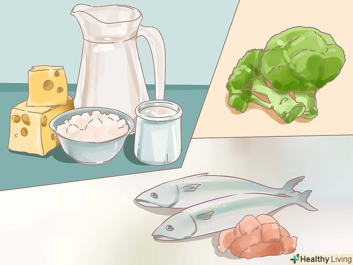 - Вітамін D містять такі продукти: риб'ячий жир, жир печінки тріски, молочні продукти (молоко, йогурт, сир). У багато продуктів додають цей вітамін.[9]