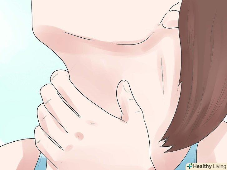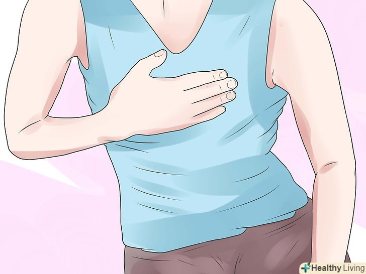 Зверніть увагу на будь-який біль у грудях.біль може бути в грудях, але віддавати в горло, шию або щелепу. Ці частини тіла мають однакові нервові закінчення, і біль переміщається по ним з одного місця в інше.[3]