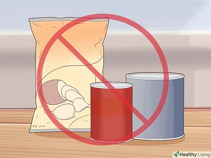 Знизьте навантаження на серце за допомогою низькосольової дієти.зайве споживання солі призводить до гіпертонії (високого кров'яного тиску). Знизьте споживання солі за допомогою наступних заходів:[25][26]- Не соліть їжу. На перших порах вам буде не вистачати солі, проте через деякий час ваш організм перебудується, і ви зможете прекрасно обходитися без неї.