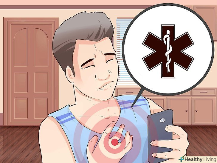 Зателефонуйте на станцію швидкої медичної допомоги, як це робиться в разі серцевого нападу.стенокардія може бути симптомом або передвісником серцевого нападу. Якщо ви не виключаєте того, що біль у грудній клітці може означати Серцевий Напад, негайно наберіть номер швидкої медичної допомоги. Напад стенокардії характеризується наступними симптомами:[2][3]- Біль у грудній клітці