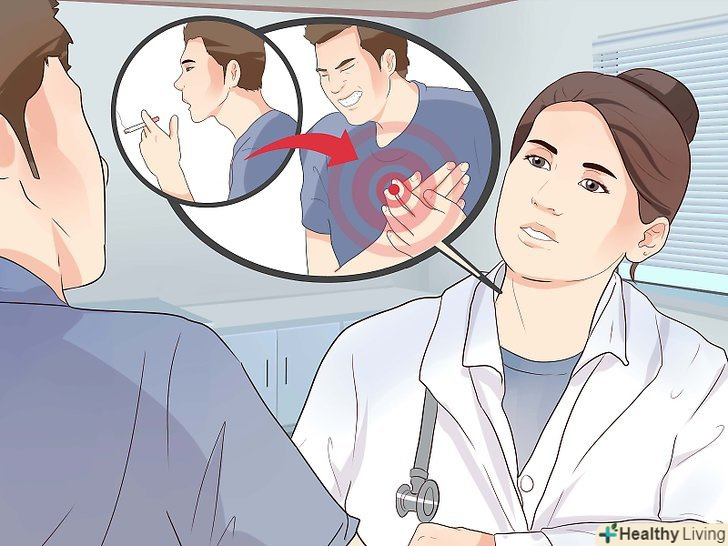 Не паліть.куріння і жування тютюну призводять до затвердіння стінок кровоносних судин і звуження артерій, в результаті чого зростає кров'яний тиск і підвищується ризик стенокардії, серцевого нападу та інсульту. Якщо ви курите, постарайтеся кинути цю шкідливу звичку за допомогою наступних заходів:[33][34]- Порадьтеся з лікарем щодо ефективних способів кинути палити