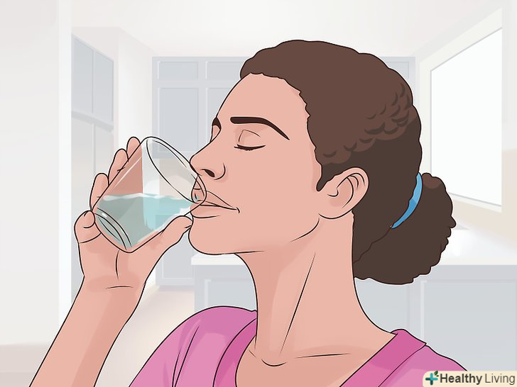Пийте воду.пиття зволожить ваші зв'язки, прискорюючи їх відновлення. Тримайте під рукою пляшку води, щоб освіжати горло, як тільки в ньому виникне сухість.[5]- Відмовтеся від вживання рідин, які можуть уповільнити загоєння зв'язок (спиртне, напої з кофеїном і напої з високим вмістом цукру).