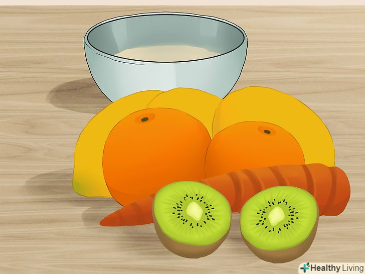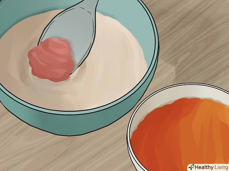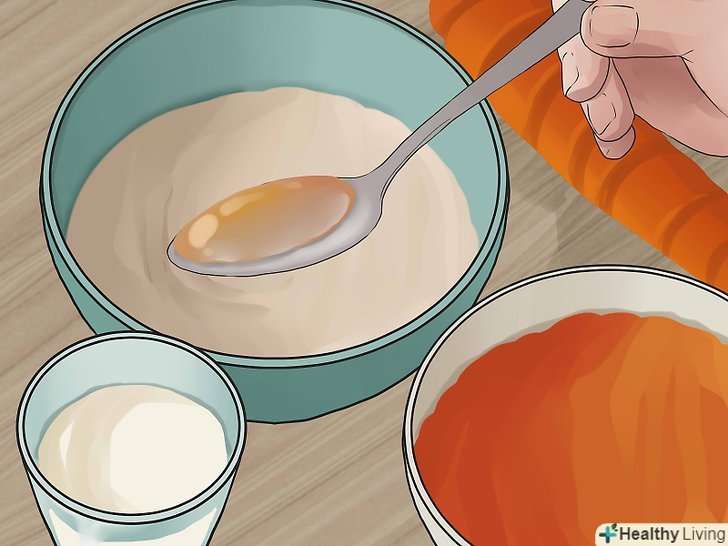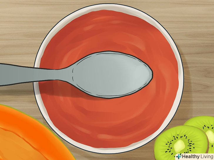 Поступово почніть додавати в кашу різні овочі і фрукти.коли ваша дитина буде з'їдати 1/4 чашки (60 мл) каші, змішаної з ¼ - ½ чашки (60-120 мл) рідини, а кількість фруктів і овочів, що не викликають алергічну реакцію, стане досить різноманітним, можете починати експериментувати з різними поєднаннями продуктів.- Спочатку додавайте тільки прості продукти на зразок батата з гарбузом, батата з яблуком або зеленої квасолі з грушами.[4] у кашу додавайте 1-2 столових ложки (15-30 мл) кожного виду фруктового пюре.
