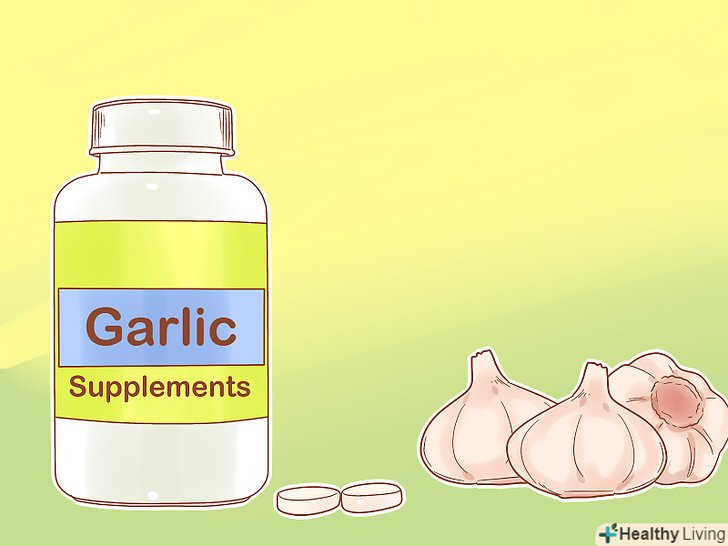 Їжте більше часнику.часник вже давно відомий як продукт для здорового серця. Він також знижує рівень холестерину, який утримує артерії серця від отримання холестерину. Часник виробляє хімічну речовину під назвою аліцин, який, як вважають, допомагає боротьбі і лікуванню різних захворювань.[2]- Ви повинні з'їдати до одного зубчика часнику в день. Якщо жувати часник це не ваше, ви також можете скористатися часниковою добавкою, яку можна придбати в місцевій аптеці.