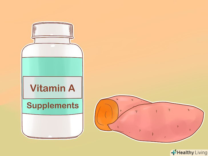 Споживайте вітамін А або їжте солодку картоплю.як і вітамін С, вітамін А також відіграє важливу роль у збереженні здорового серця. Солодка картопля містить повний вітамін А, тому Ви повинні їсти його часто. Ви також можете брати вітамін А або приймати полівітаміни, які містять добову дозу вітаміну А.