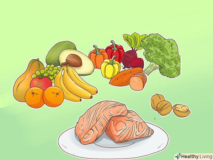 Спробуйте середземноморську дієту.Середземноморська дієта, як відомо, сприяють здоров'ю серця і допомагають тримати м'язи в тонусі. Ця дієта складається з п'яти невеликих прийомів їжі в день, замість трьох великих. У ній також використовується оливкова олія, а не рослинна, тому що оливкова олія багата мононенасиченими жирами (що означає, що це корисні жири). [5] харчування, як правило, складається з:- Порція нежирного м'яса або риби, злакові, свіжі фрукти, овочі, горіхи і бобові.