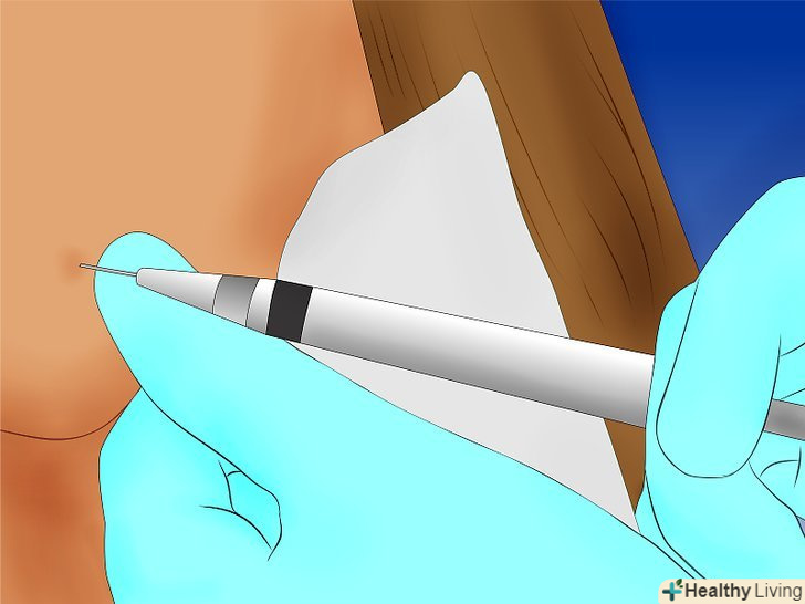 Погодьтеся на розтин кісти, якщо вас не хвилює ймовірність виникнення шраму на обличчі.лікар проколе кісту і усуне весь кератин і шкірний жир з кісти, що дозволить їй незабаром зажити.- Проколювання повинно закінчитися ретельним чищенням і перев'язкою для уникнення зараження рани. Кіста може повернутися в майбутньому навіть після проколювання.