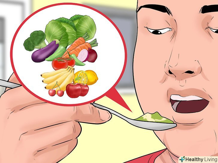 Здоровий збалансований раціон. Насолоджуйтесь раціоном, що складається з натуральних і органічних продуктів, на зразок фруктів, овочів і пісних білків. Деякі дослідження радять прибрати їжу, яка була оброблена і містить такі шкідливі речовини, як підсолоджувачі та консерванти. Також вам варто відмовитися від таких алергенів, як яйця, молоко і крупи. [14]