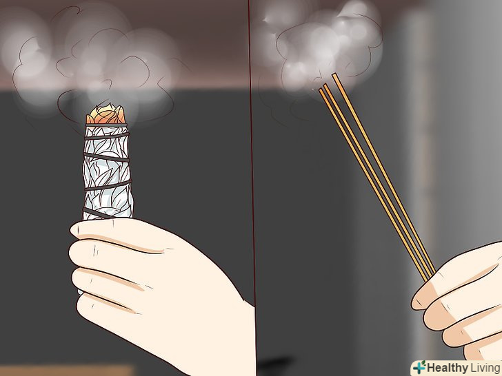 Дозвольте диму повільно наповнити приміщення. проходьте по кожній кімнаті, підносячи дим до кожного кута; дозвольте диму обкурювати стіни, вікна і стелю; нехай він клубочиться, наповнюючи собою приміщення. Уявіть собі, що разом з цим димом ваш будинок і ваше життя покидає вся негативна енергія.- Сконцентруйтеся на будь-яких дверних, віконних отворах і арках. Покладайтеся на інтуїцію. Якщо ви добре знаєте приміщення, то могли помітити, що деякі його частини більше потребують очищення, ніж інші.