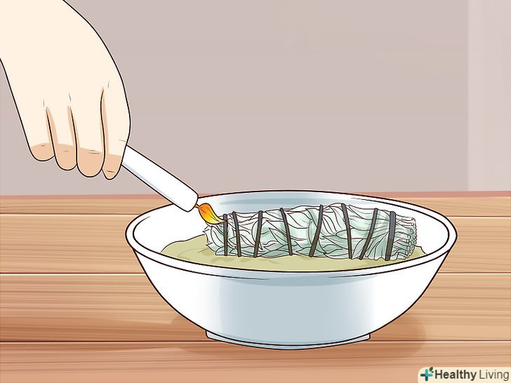Покладіть шавлія в підготовлену ємність. підпаліть його полум'ям свічки, сірником або запальничкою. Дозвольте шавлії горіти лише кілька секунд, а потім задуйте полум'я і дозвольте йому тліти, випускаючи дим.- Будьте обережні. Сушений шавлія горить дуже добре.
