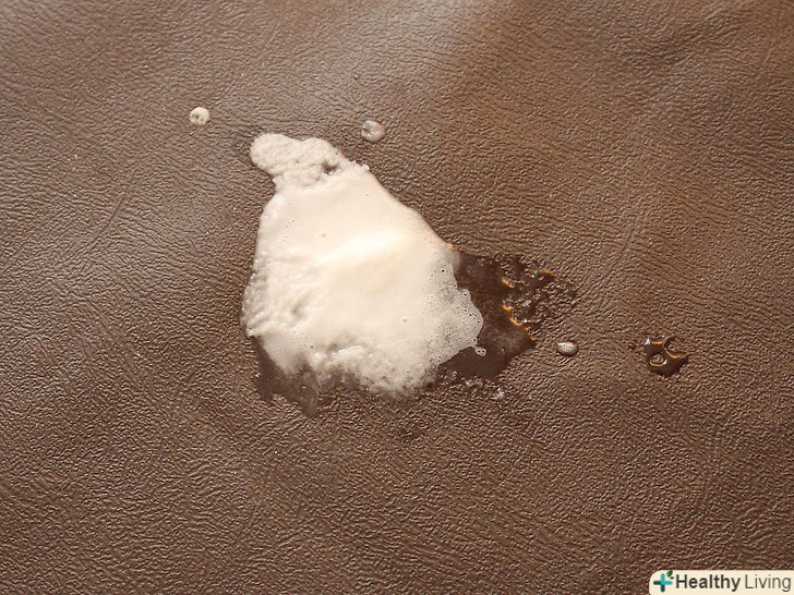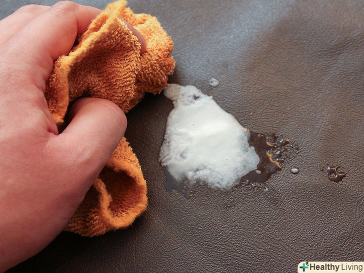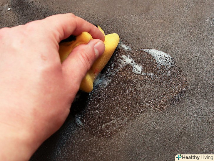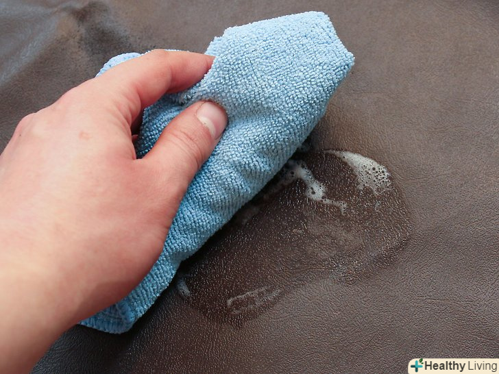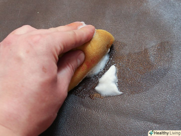 Потріть забруднене місце.занурте губку або щітку в приготований розчин і потріть брудне місце. Якщо необхідно очистити шкіру, можна протерти її паперовим рушником або ганчіркою.
