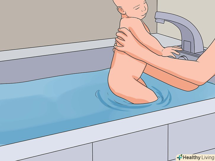 Викупайте дитину. викупайте дитину у ванні з колоїдною вівсянкою протягом 15-20 хвилин. Зберіть молочну воду руками, і покапайте її на шкіру дитини. Не використовуйте для цього губку. [11]