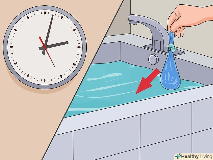 Покладіть мішечок у ванну. залиште мішечок у воді і дозвольте йому замочитися протягом декількох хвилин. Скоро з мішечка витече рідина молочного кольору, яка полегшить свербіж. [4]