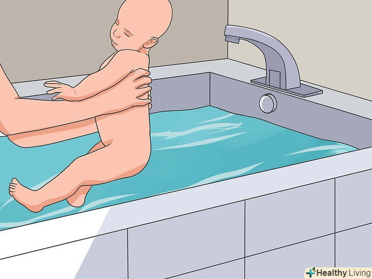 Покладіть дитину у ванну. коли вівсяні пластівці досить промокнуть, покладіть свою дитину у ванну. Будьте обережні, так як через вівсянки ванна буде більш слизька, ніж зазвичай. [5]