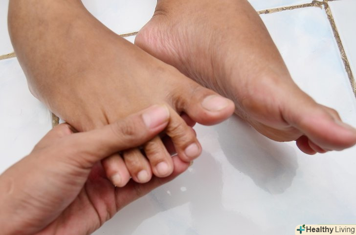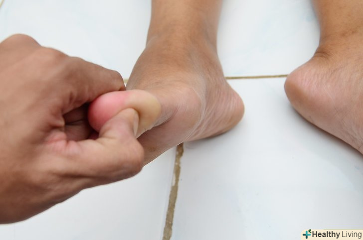 Покладіть великий палець руки трохи нижче центру опуклої частини подушечки стопи.