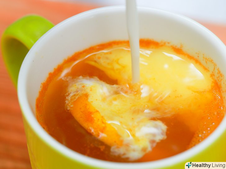 Додайте куркуму безпосередньо в киплячу воду. додайте інші інгредієнти (все, крім молока). Якщо ви використовуєте трави, теж поки не додавайте їх.