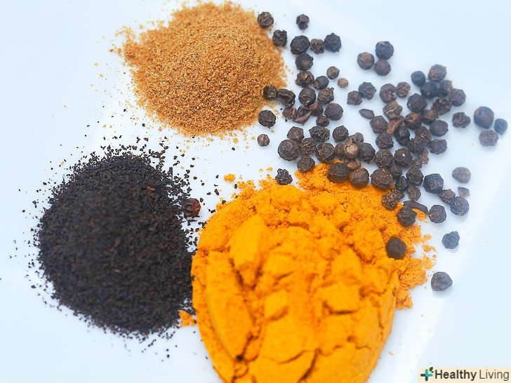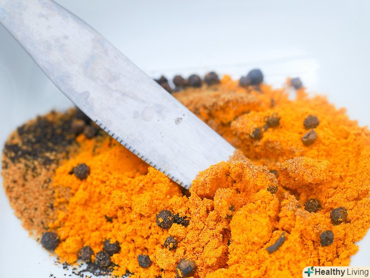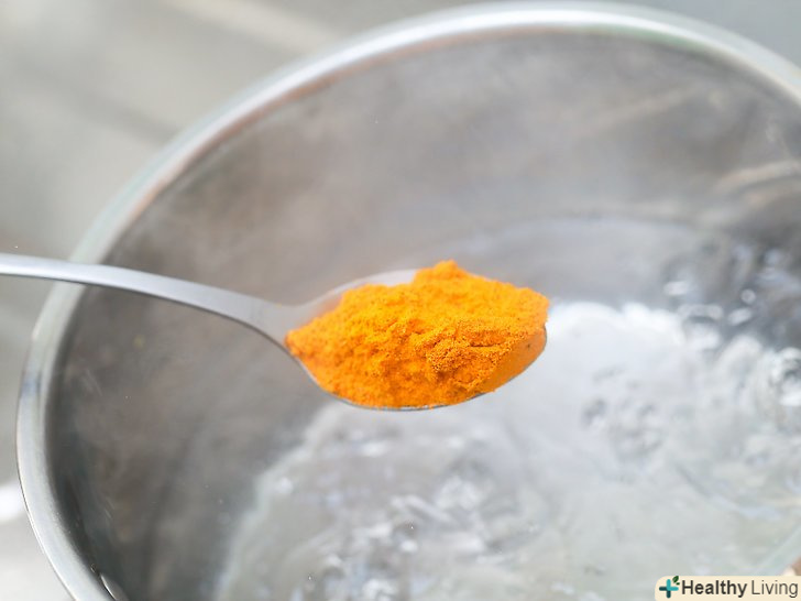 Візьміть куркуму. простіше купити куркуму у вигляді порошку, ніж свіжу. Однак свіжу куркуму іноді все ж можна знайти на ринку або у великих супермаркетах.- Щоб подрібнити свіжу куркуму, спочатку зішкребіть з кореня шкірку за допомогою ложки або ножа, а потім потріть її на самій дрібній тертці. Якщо у вас немає терки, то просто наріжте корінь ножем дуже-дуже дрібно.
