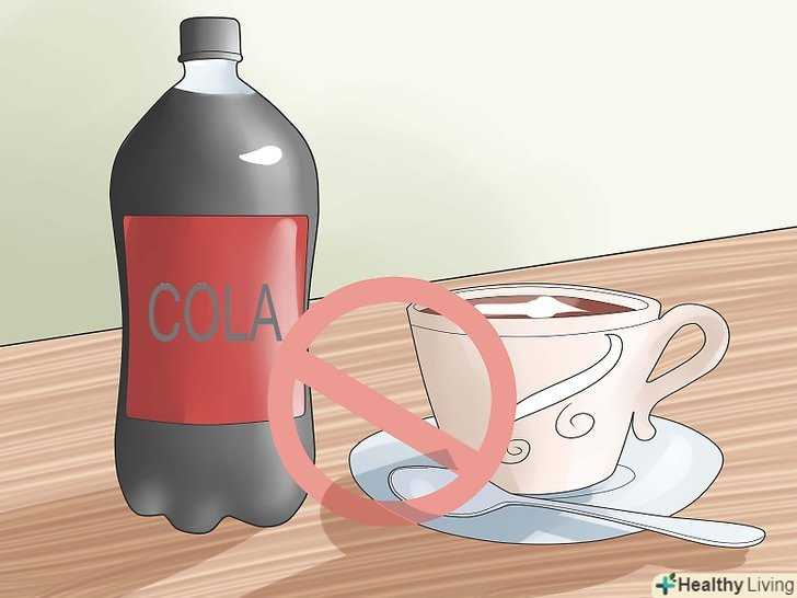 Відмовтеся від кофеїну. Їжа та напої, що містять кофеїн збільшують вміст оксалату кальцію або сечової кислоти в нирках, що іноді може призвести до утворення каменів у нирках. Кофеїн змушує нирки працювати в посиленому режимі, проте так вони позбавляють організм від меншої кількості токсинів. Саме тому постійно пийте воду.- Не тільки газовані напої містять кофеїн, він входить до складу деяких видів чаю і шоколаду. Ревінь також містить кофеїн. Перш ніж що-небудь з'їсти переконайтеся, що в ньому немає кофеїну. [1]