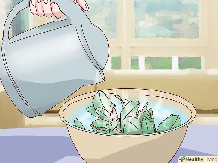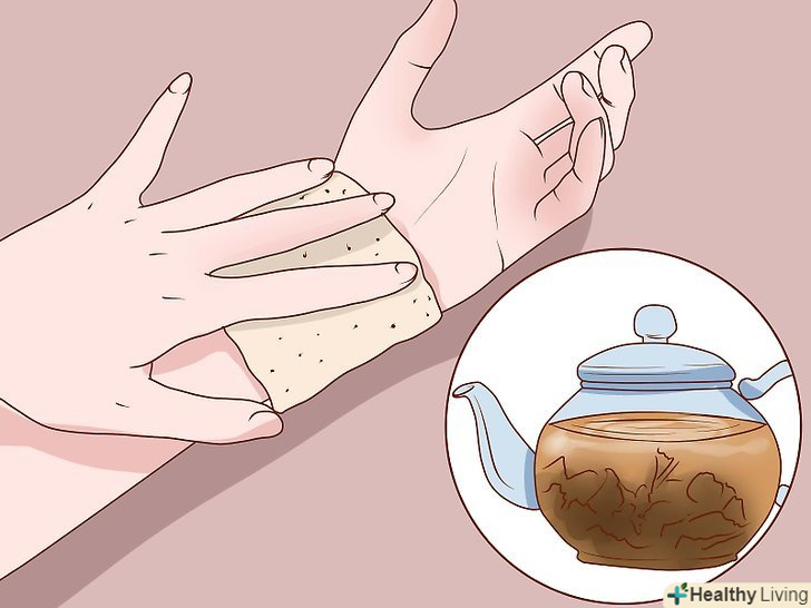 Прикладайте компрес з трав'яного чаю, щоб зняти запалення шкіри. При захворюваннях шкіри з проявом запальних процесів можна прикладати компрес з календули, жовтокорня або мирра. [12] [13] найбільшу користь можна отримати, якщо прикладати чай прямо на шкіру.- Щоб приготувати чайний компрес, заваріть чашку чаю з однією з вищезазначених трав, після чого дайте чаю охолонути, щоб вода стала злегка теплою. Чай також можна охолодити, щоб посилити його протизапальні ефекти. Холод допоможе зняти набряк і запалення.