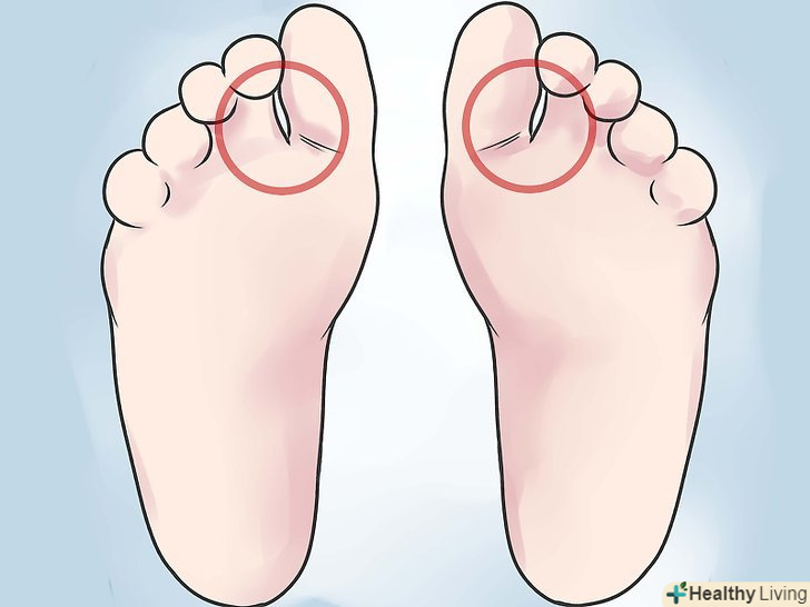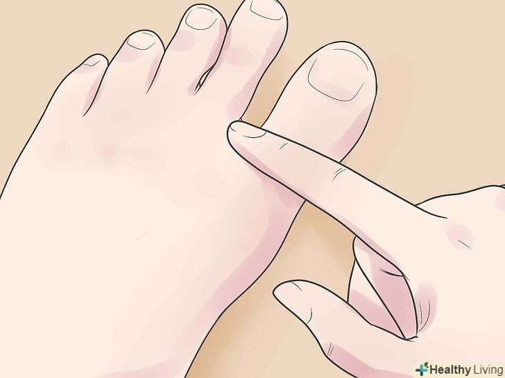 Знайдіть місце між великим і другим пальцями на верху ступні.