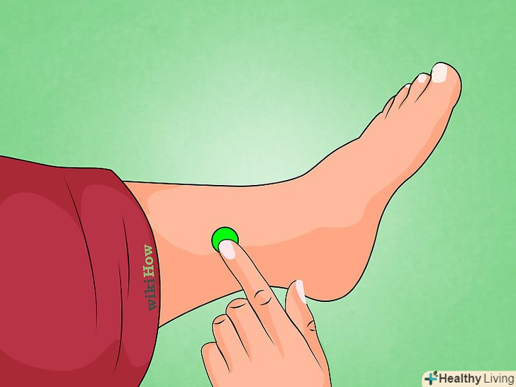 Знайдіть точку натискання селезінки, щоб допомогти ущільнити вашу травну систему.- Ви знайдете її вище щиколотки на внутрішній стороні ноги, ззаду і в безпосередній близькості від кістки. Якщо у вас виникли проблеми з пошуком місця, спробуйте знайти центр щиколотки і посуньте пальці вгору на ширину 4 пальців.