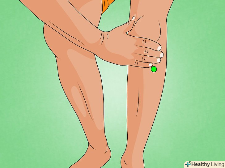 Стимулюйте точку натискання селезінки, яка допомагає регулювати обмін речовин і води в організмі.- Проведіть пальцем у напрямку внутрішньої сторони ноги, поки не дійдете до кістки гомілки. Підніміть палець вгору приблизно на 2,5 см уздовж гомілки до коліна. Ваші пальці повинні потрапити в природне поглиблення ноги у верхній частині кістки.