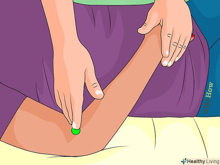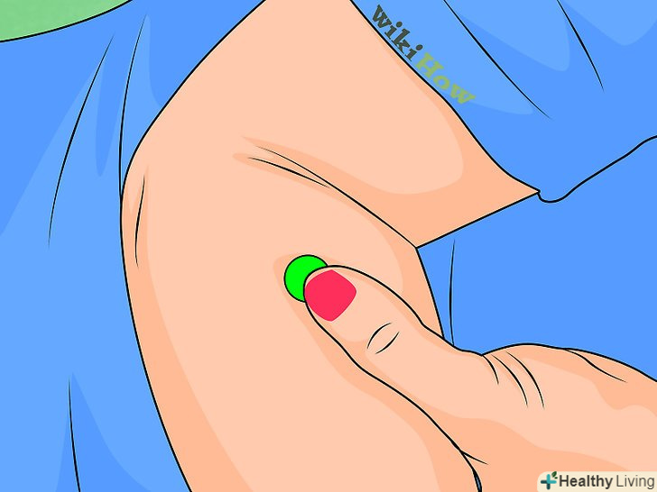 Розвантажте точку натискання товстої кишки, знайшовши цю точку близько ліктя.- Перемістіть пальці від ліктьового суглоба до внутрішнього згину ліктя на ширину великого пальця.