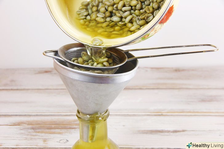 Вимкніть вогонь і процідіть екстракт в ємність. покладіть дрібне сито на миску або іншу ємність (наприклад, на банку). Почніть повільно лити екстракт через сито. [5]- Сито не пропустить зерна і великі шматочки лушпиння.