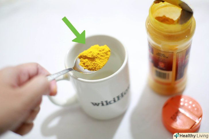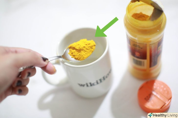 Додайте порошок куркуми в страви та напої. Куркума зазвичай продається у формі порошку. Ви можете додати в свій раціон близько 400-600 мг куркуми (3 рази на день). Ви можете додавати куркуму в соуси, супи і навіть напої, наприклад, в молоко або в чай. [2]- Щоб зробити чай з куркумою, закип'ятіть 1 склянку води і розчиніть в ньому 2 грами порошку куркуми. Ви також можете додати лимон, мед або імбир, щоб поліпшити смак чаю.