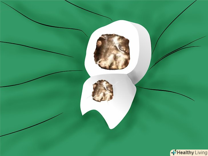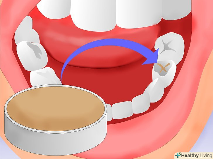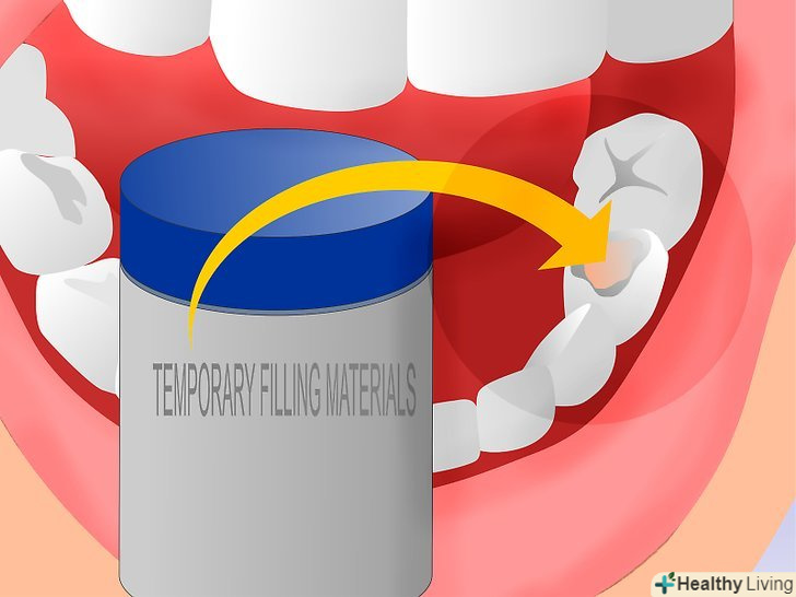 Поставте тимчасову пломбу. такі пломби використовуються тоді, коли у пацієнта немає можливості відразу ж поставити постійну пломбу, оскільки незалікована порожнина зазвичай викликає неприємні відчуття. Закрити порожнину можна тимчасовою пломбою, купивши її в аптеці. Ставити її потрібно так:- Почистіть зуб. Видаліть наліт і залишки їжі.