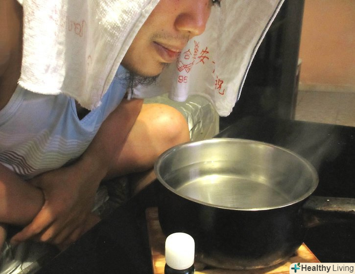 За допомогою масла чайного дерева можна зняти закладеність в грудях, зменшити біль в горлі.Наповніть водою велику каструлю і поставте на вогонь. Доведіть воду до кипіння, влийте в каструлю 2-3 краплі олії чайного дерева. Нахиліться над каструлею, зверху прикрийте голову великим рушником. Надто близько нахилятися до пару не варто-в іншому випадку ви ризикуєте отримати опік шкіри.- Вдихайте такий пар по 5-10 хвилин щовечора перед сном. Виконуйте дану процедуру до повного зникнення симптомів. Якщо симптоми не йдуть більше п'яти днів-зверніться до лікаря.