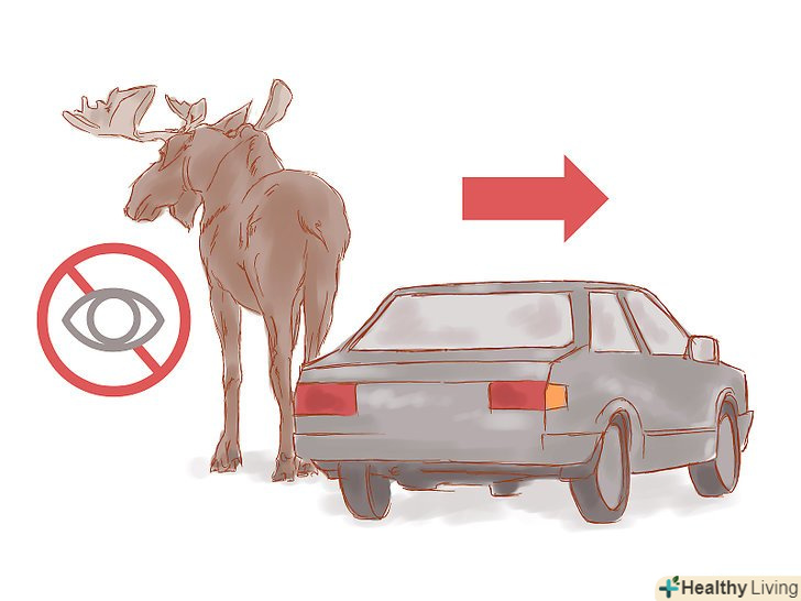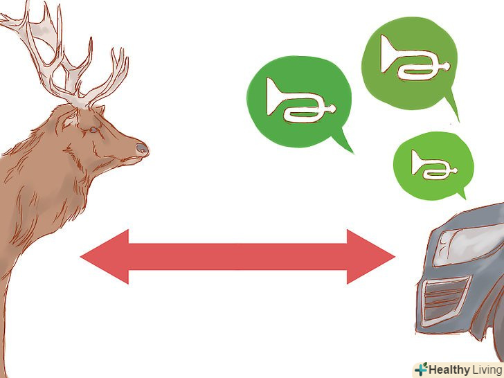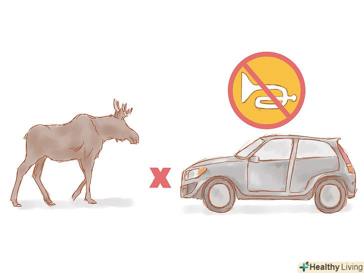 Сигнальте лосю або оленю короткими гудками.причому робіть це тільки в тому випадку, якщо тварина знаходиться досить далеко попереду, а навколо немає інших машин, які можуть помилково витлумачити ваші сигнали. Гудки злякають тварина, і воно може скакнути в сторону, але немає ніякої гарантії, що воно не побіжить прямо на вас. Якщо ж лось або олень знаходиться в безпосередній близькості, то сигналити взагалі не варто, так як тварина може злякатися і кинутися прямо на автомобіль.[1][2]
