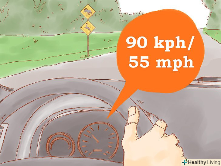 Ваша швидкість повинна бути безпечною.не женіть, проїжджаючи по місцях проживання лосів і оленів. Навіть якщо ви не будете поспішати, то все одно доїдете до місця призначення; зате, в разі зустрічі з великим тваринам, у вас з'явиться пара зайвих секунд, і ви встигнете уникнути зіткнення. Відповідно до рекомендацій фахівців-екологів, при русі через ареал проживання диких тварин в хороших погодних умовах, безпечною є швидкість не вище 90 км/год: в такому випадку у вас є трохи часу на екстрену зупинку. Рух на підвищених швидкостях пов'язано з наступними проблемами:- Зменшується ймовірність уникнути зіткнення, тому що на екстрене гальмування залишається занадто мало часу;
