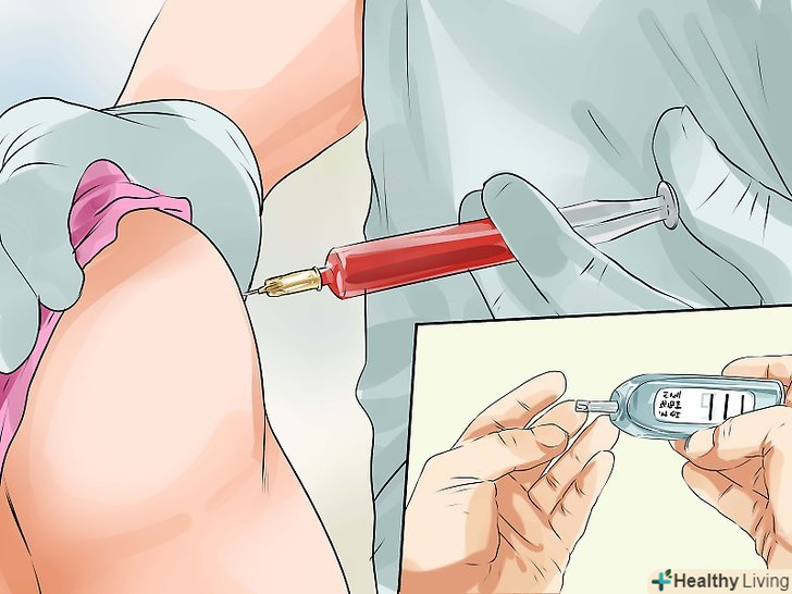 Часто перевіряйте рівень глюкози в крові. лікар повідомить вам про рівень глюкози, до якого слід прагнути. Слід щодня перевіряти вміст цукру в крові. Це можна робити вдома за допомогою спеціального приладу (глюкометра) і тестових смужок. Залежно від моделі глюкометра крапля крові береться з пальців або передпліччя. При цьому робиться шпильковий укол, безболісний для більшості людей, хоча у деяких він може викликати біль. Як правило, слід прагнути до наступного рівня глюкози в крові: [11]- Вранці (або на голодний шлунок): менше 5,3 ммоль / л (lt;100 мг / дл);