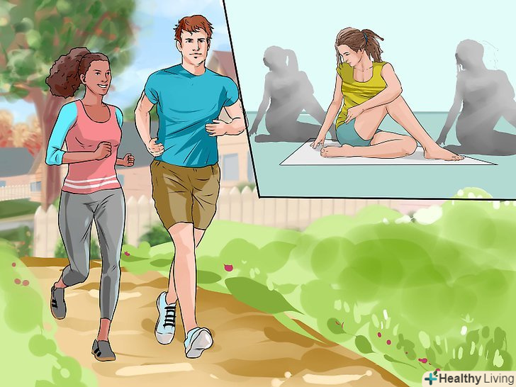 Подумайте про те, щоб займатися з персональним тренером або записатися на навчальні заняття. коли ваша фізична форма покращиться, спробуйте займатися з персональним тренером або запишіться на навчальні заняття, щоб вам допомогли вибрати відповідні вправи і їх інтенсивність. Найлегше почати з простої ходьби, проте можна також займатися плаванням або записатися на курси йоги. [15]