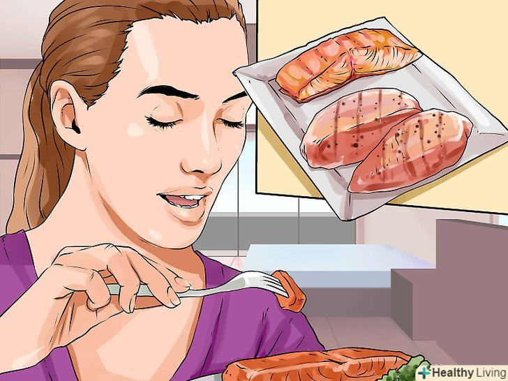 Їжте більше риби та м'яса птиці без шкіри, щоб отримувати нежирні білки. вживання достатньої кількості якісної білкової їжі важливо для профілактики цукрового діабету. [6] птах повинна бути без шкіри — в цьому випадку в ній буде менше шкідливих для здоров'я тварин жирів. Щотижня з'їдайте також пару порцій спійманої в дикій природі риби.- Спіймана в дикій природі риба, така як лосось, тріска, пікша і тунець, є хорошим джерелом омега-3 жирних кислот, які необхідні для здоров'я.