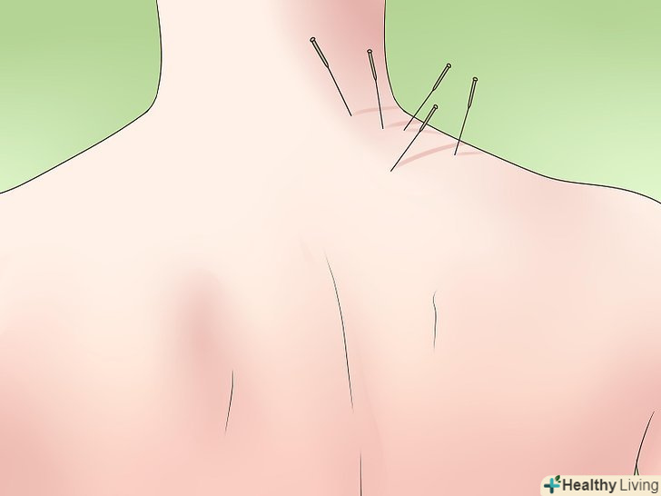 Зробіть собі масаж.якщо з тих чи інших причин, ви не можете пройти голковколювання, існують певні техніки самомасажу, які допомагають зняти симптоми застуди. У цих техніках масаж проводиться приблизно по тих же точках, що і в голковколюванні, хоча масаж трохи менш ефективний. Ви можете зробити наступне:- Розітріть лоб від центру в сторони (10 разів).