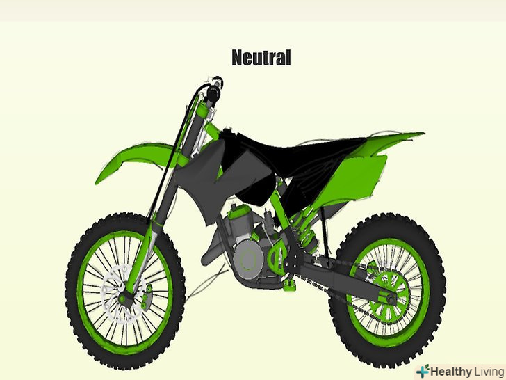 - Ви повинні сидіти на мотоциклі ближче до переду. Перед стартом переконайтеся, що включена нейтральна передача. Нейтральна нижче двох і трохи вище одиниці. Затисніть перемикання передач і легенько перемкніть його на нейтральну. Покачайте мотоцикл вперед-назад. Якщо він гладко рухається в обох напрямках, значить ви на нейтральній передачі.