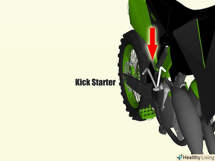- Коли мотоцикл на нейтральній, ви можете завести його ножним стартером. Використання ножного стартера може здатися складним новачкові, але, насправді, це дуже просто. Просто поставте ногу на стартер, злегка підстрибніть і натисніть на нього з силою.