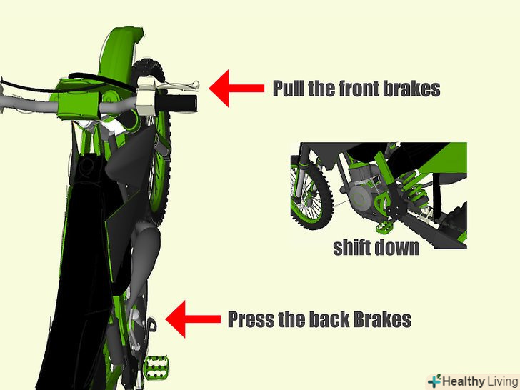 - Якщо ви хочете уповільнити кросовий мотоцикл, зменшіть передачу,скиньте газ, і гальмуєте, використовуючи передній, задній або обидва гальма.